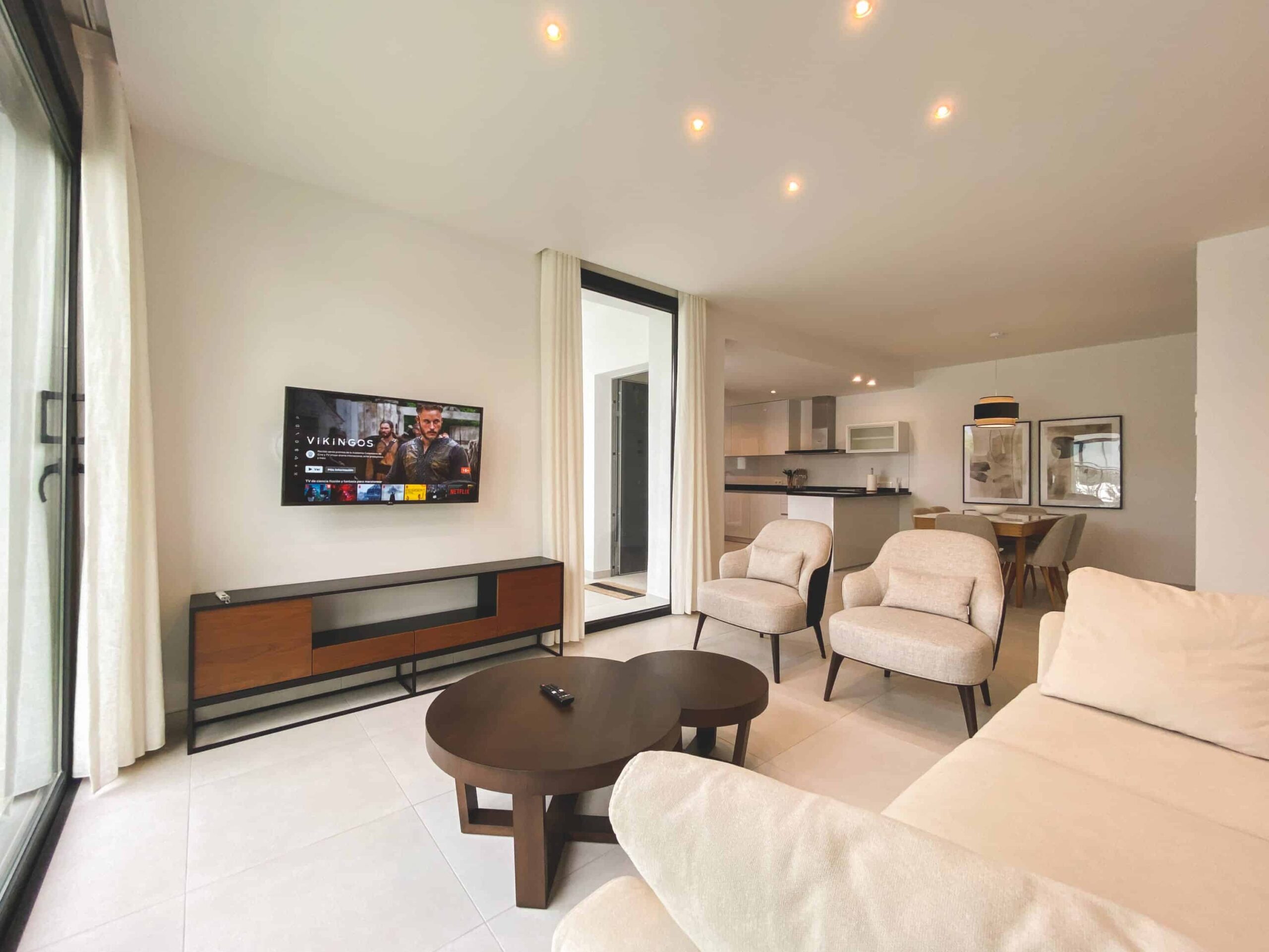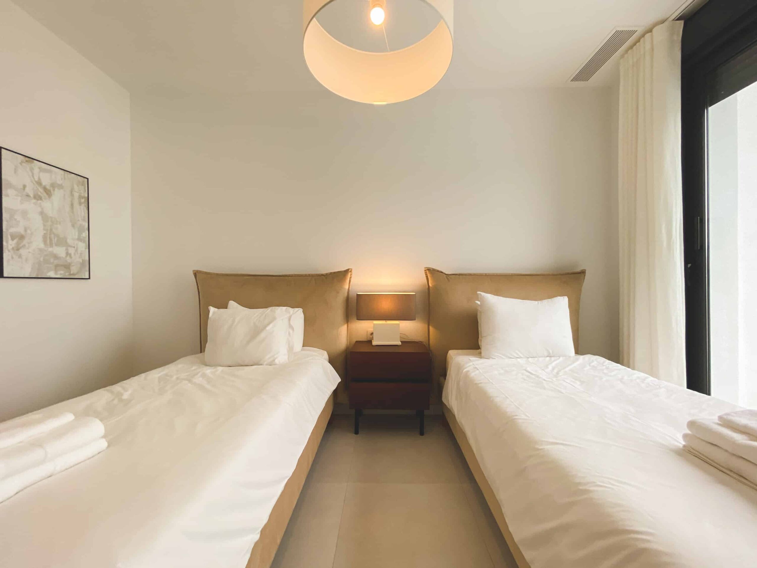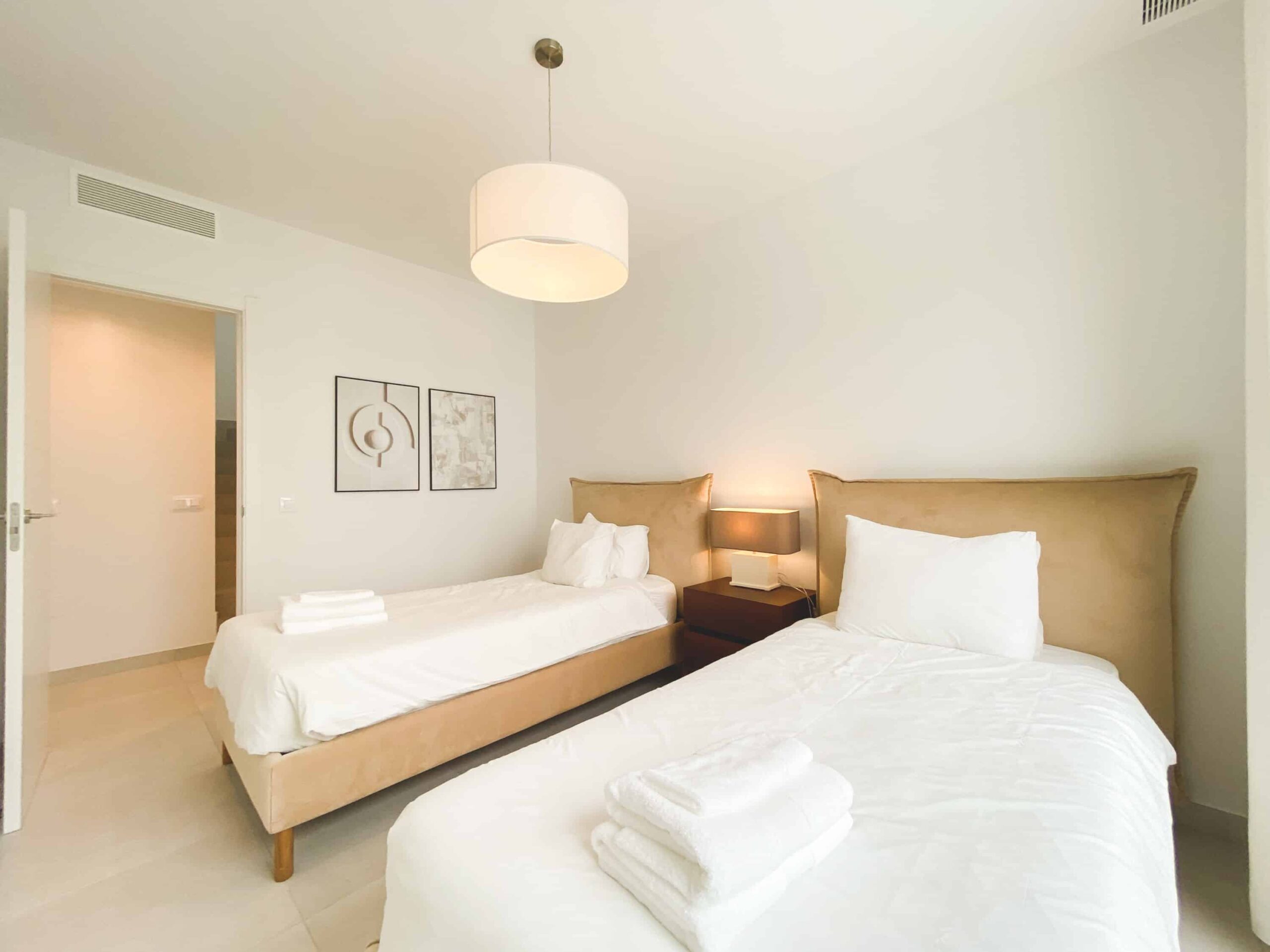 تحتوي الشقة على ثلاث غرف نوم وثلاثة حمامات. الملكية والداخلية جديدة تماماً للتأكد من أنك ستستمتع بإقامتك. تحتوي غرفة النوم الرئيسية على حمّام داخلي وغرف الضيوف تحتوي على سريرين مفردين وسرير مزدوج. تحتوي غرفة المعيشة الفسيحة على تلفزيون ذكي مزوّد بالإنترنت لمشاهدة المسلسلات على يوتيوب أو نيتفليكس.