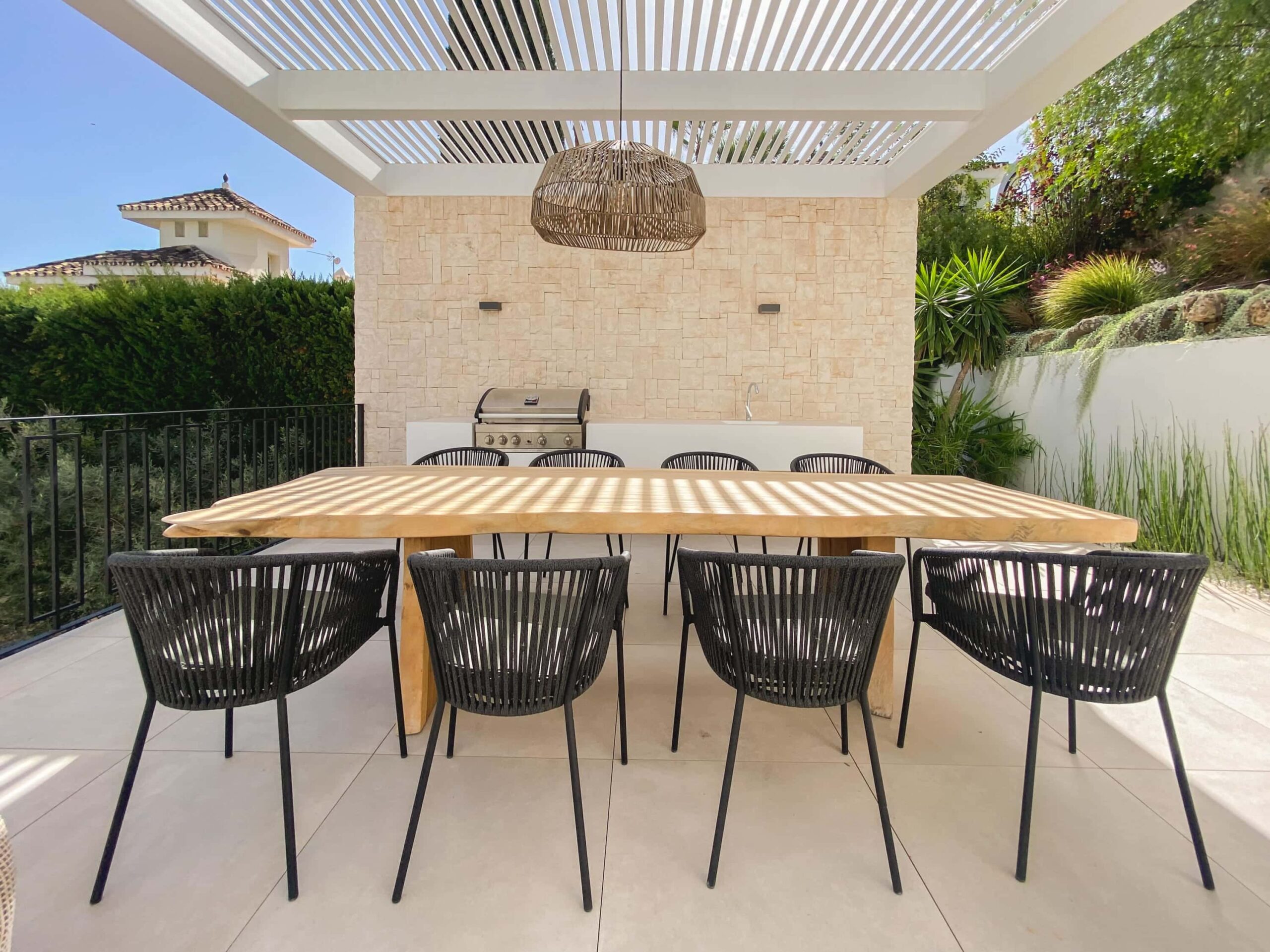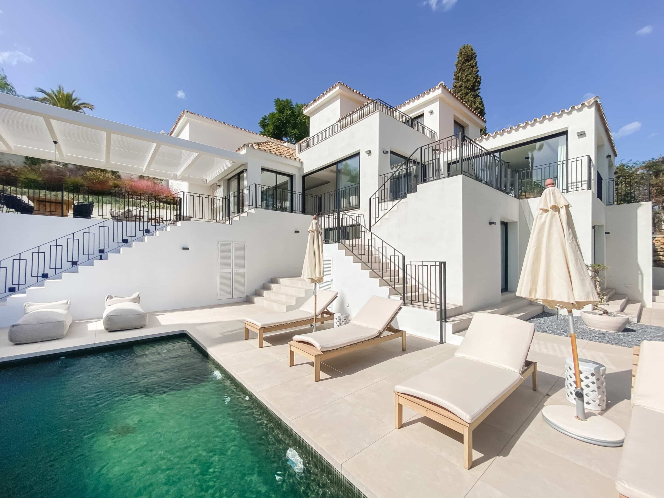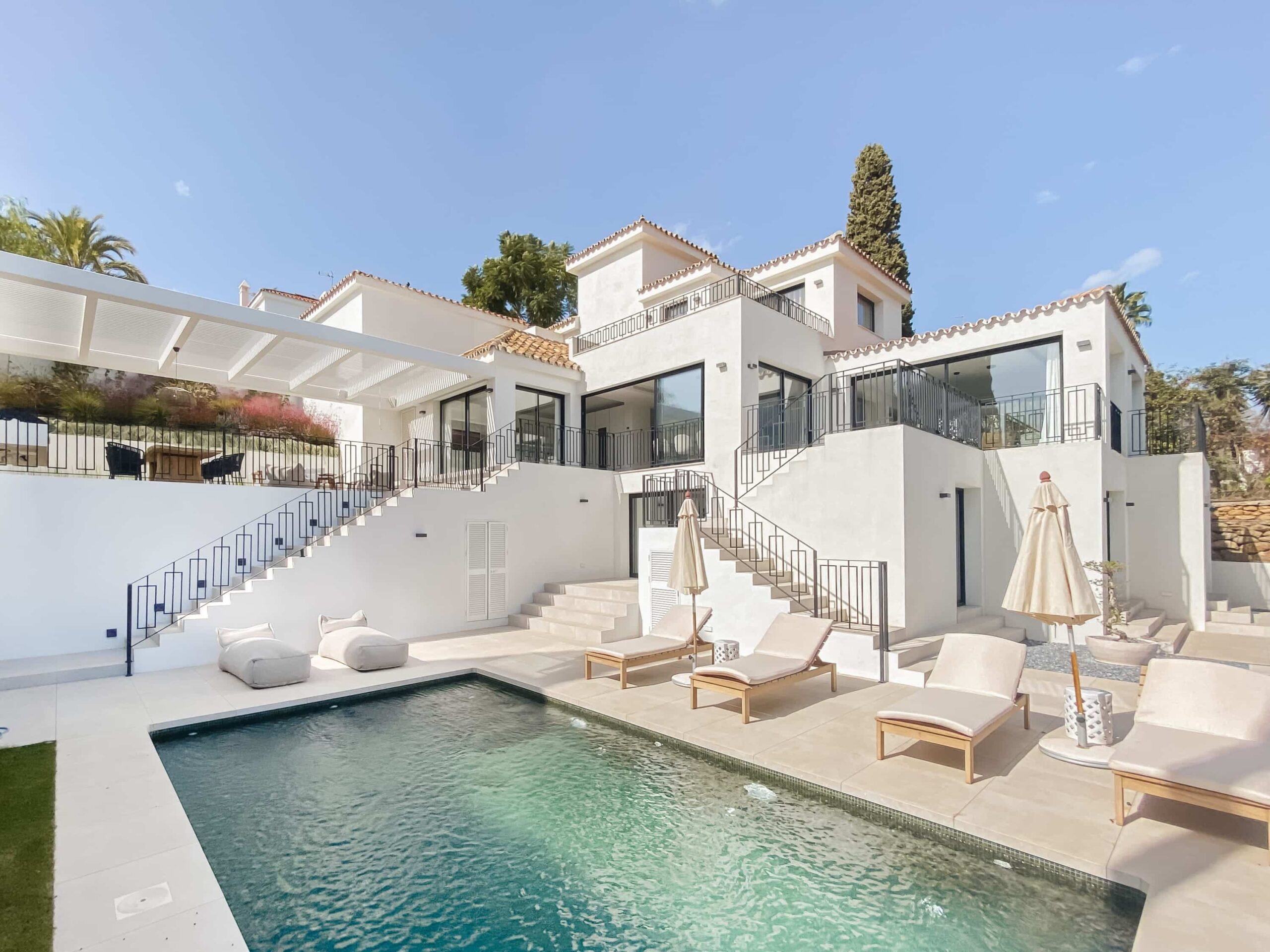 هذه الفيلا التي تم تجديدها مؤخراً هي تعريف للمعيشة الراقية والفاخرة، وهي مصممة بالكامل بمميزات ومرافق حديثة. تعكس المواد والتصميم الداخلي أسلوباً دافئاً وعصرياً في نفس الوقت متأثراً بالدول الإسكندنافية. توفر جميع غرف النوم تجربة فندقية. منطقة المعيشة ذات المخطط المفتوح مثالية للعائلات الكبيرة. تتمتع منطقة تناول الطعام بإمكانية الوصول المباشر إلى المنطقة الخارجية. يقع في موقع مثالي في نويفا الأندلس مما يوفر سهولة الوصول إلى منطقة بويرتو بانوس وسان بيدرو وماربيا.